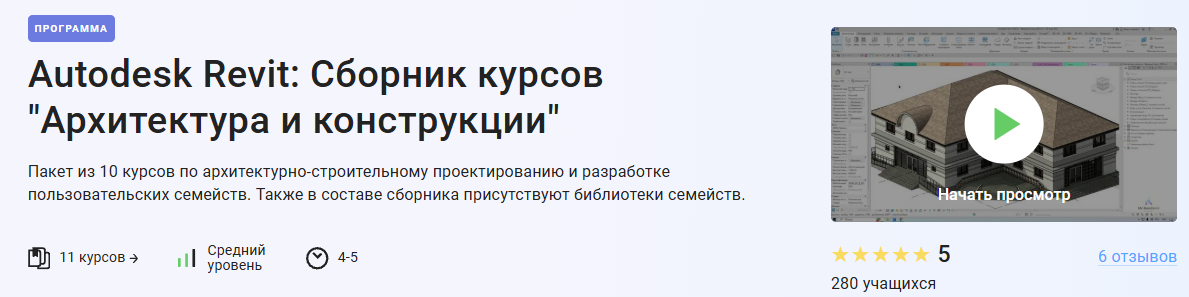 Пакет из 10 курсов по архитектурно-строительному проектированию и разработке пользовательских семейств.