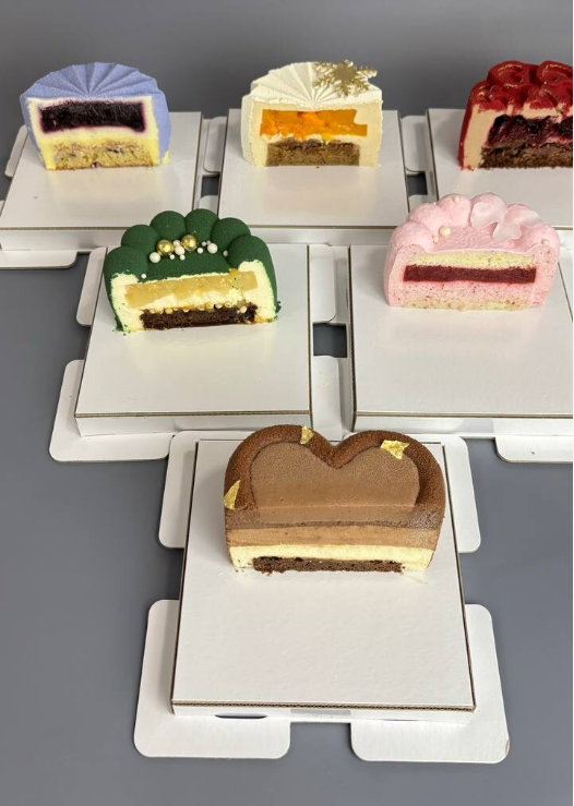 - Мини-торты с идеальными разрезами, стабильными муссами и сочными начинками.