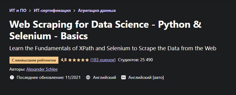 [Alexander Schlee] [Udemy] Web Scraping for Data Science (Python & Selenium) (2021)