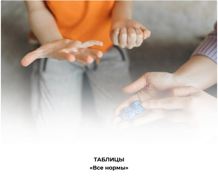«Все нормы» — это 8 таблиц с нормами развития от рождения до 7 лет. В каждой таблице представлены нормы: