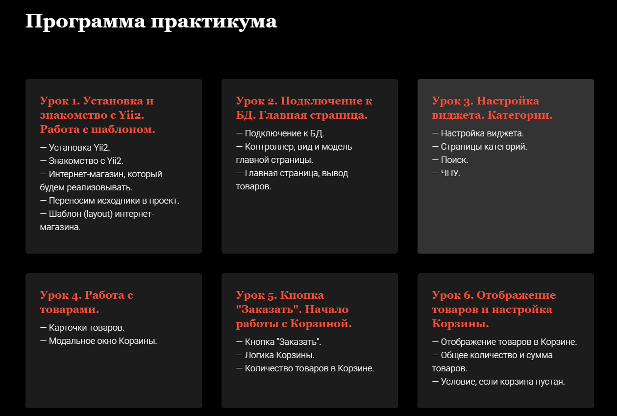 На курсе вы научитесь работать с PHP-фреймворком Yii2 и сделаете на нём интернет-магазин.