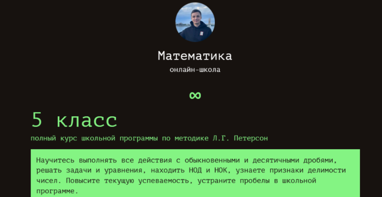 Курс основывается на методике обучения Л.Г. Петерсон за 5-й класс. Задания частично взяты из её учебников и задачника одной из лучших физмат школ г. Москвы - Курс размещён на платформе Getcourse
