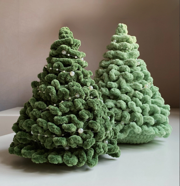 Две текстовые схемы елочек разных размеров (в зависимости от использованной пряжи размер ёлочек варьируется от 21-22 до 28-29 СМ)