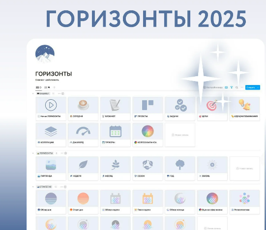 Горизонты позволяют создать целостную картину для глубокой рефлексии и эффективного планирования на всех временных отрезках. Горизонты - это дом вашей стратегии.