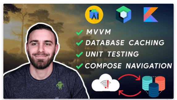 Продолжение курса Jetpack Compose MVVM (бесплатный на сайте автора) для начинающих с дополнительными функциями, такими как: Кэширование базы данных; Сценарии использования; Модульное тестирование.