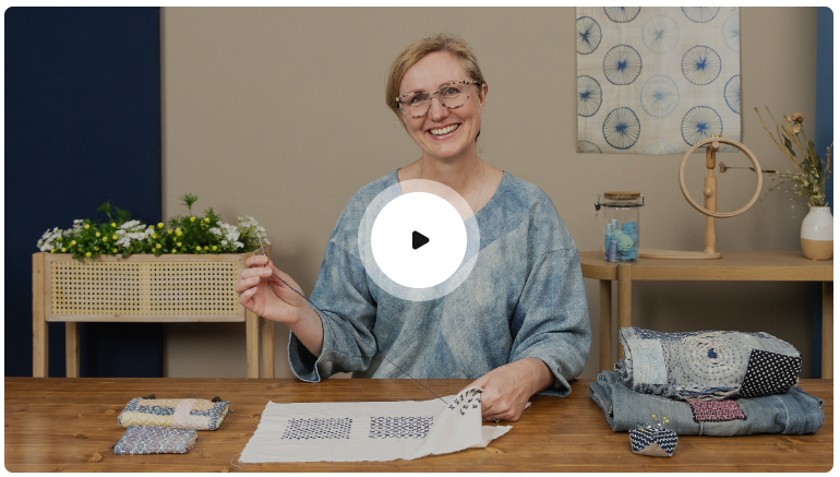 Вы изучите традиционную японскую технику шитья сашико, которая использует простой бегущий стежок для укрепления тэджидо, украшения тканей и починки одежды.