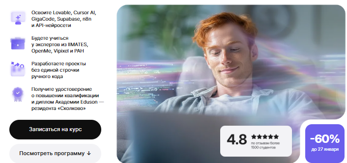 - Итоговый проект: разработаете fullstack-приложение с помощью вайб-кодинга