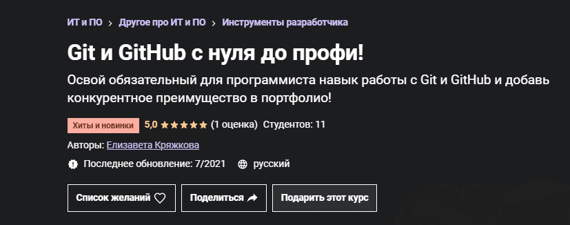 [Елизавета Кряжкова] [Udemy] Git и GitHub с нуля до профи! (2021)