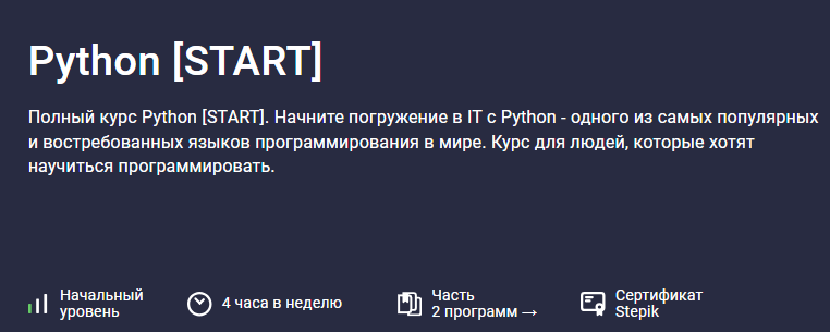 Полный курс Python [START]. Начните погружение в IT с Python - одного из самых популярных и востребованных языков программирования в мире. Курс для людей, которые хотят научиться программировать.stepik.org