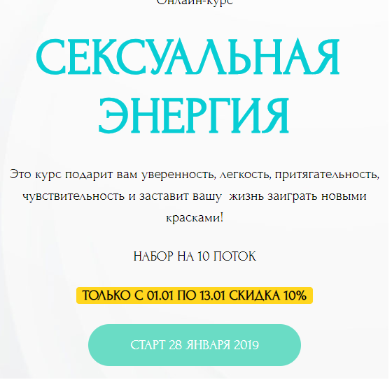 Вы узнаете как постоянно пребывать в ресурсном состоянии легкого возбуждения, когда “глаза блестят” и вы вся светитесь изнутри.