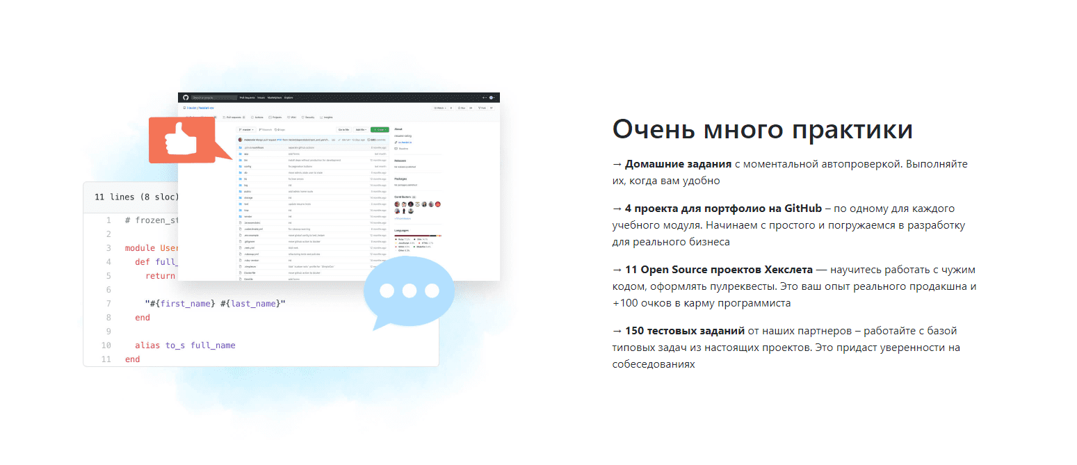 Изучите один из самых выразительных языков программирования Ruby. Освойте фреймворк Rails или, как его называют разработчики, «рельсы», который позволит сконцентрироваться на методах и логике вашего проекта, а не возиться с большим объемом кодаru.hexlet.io