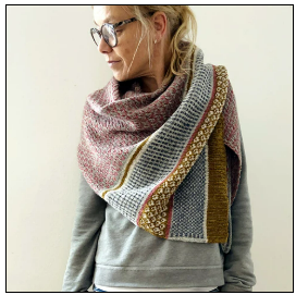 SSP вяжется платочной вязкой (в изнаночном направлении), с прибавлением петель по одному краю для создания асимметричного треугольника. Петли прибавляются в изнаночном узоре, а затем переходят в резинку 1х1. Вязаный край и цветная изнаночная вязка (в каждом ряду вы работаете только с одним цветом) станут идеальным началом для изучения цветной изнаночной вязки (обещаем — вам будет очень весело!). Сочетание простых узоров изнаночной вязки и широкой резинки придает этой шали изысканный, но в то же время непринужденный вид.