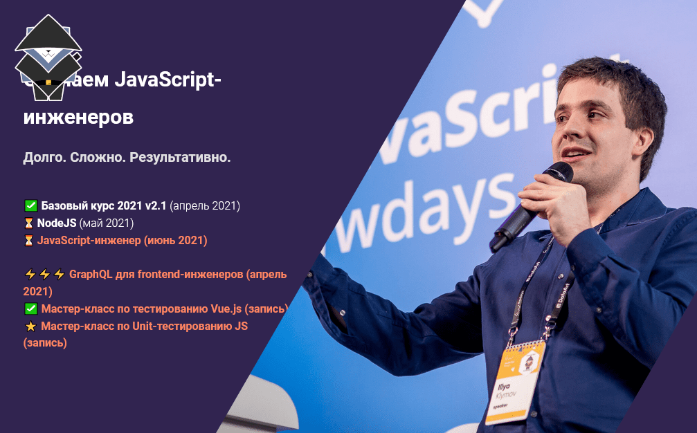 - 2 real-time семинара (суммарно около 4 часов) с разборами реальных примеров тестирования чистого JavaScript-кода с использованием Jest (запись будет снабжена таймкодами для удобной навигации)