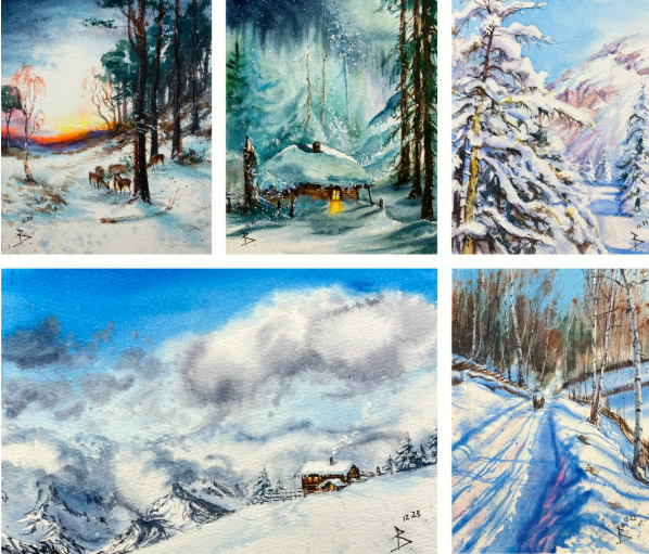 Поскольку мы рисуем разных мастеров, то каждый урок представляет собой конкретную схему создания акварельной картины: от разбора, наброска и до финальной работы.