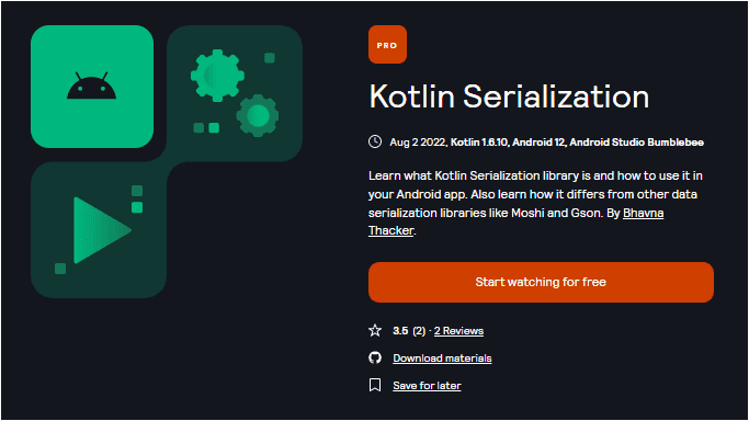 Этот курс предназначен для разработчиков Android, которые хотят изучить основы сериализации/десериализации и узнать, как использовать библиотеку сериализации Kotlin в своих приложениях. Этот курс предполагает знакомство с Android Studio и основами языка программирования Kotlin.