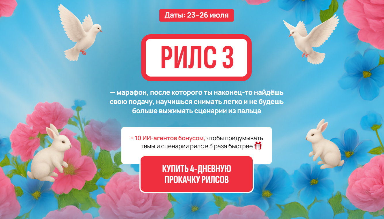 Марафон, после которого ты наконец-то найдёшь свою подачу, научишься снимать легко и не будешь больше выжимать сценарии из пальца + 10 ИИ-агентов бонусом, чтобы придумывать темы и сценарии рилс в 3 раза быстрее.