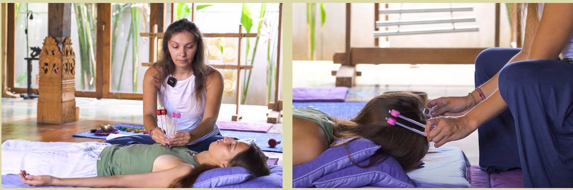 И помимо того, что камертонная терапия сама по себе является глубоко эффективной формой лечения, она также может стать мощной поддержкой для интеграции других методов лечения, таких как физиотерапия, массаж, хиропрактика и психотерапия, а также объединена с различными инструментами саундхлинига, такими как тибетские и хрустальные поющие чаши, гонг.