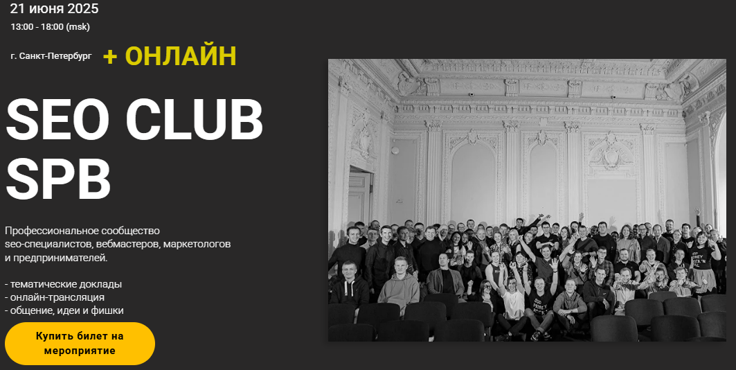SEO CLUB SPB - выступления, встречи и нетворкинг SEO-специалистов, вебмастеров и маркетологов в Санкт-Петербургеseoclubspb.ru