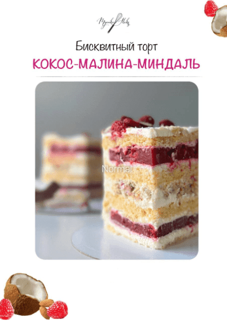 [my_cake_aleks] Бисквитный торт Кокос-малина-миндаль (2022)