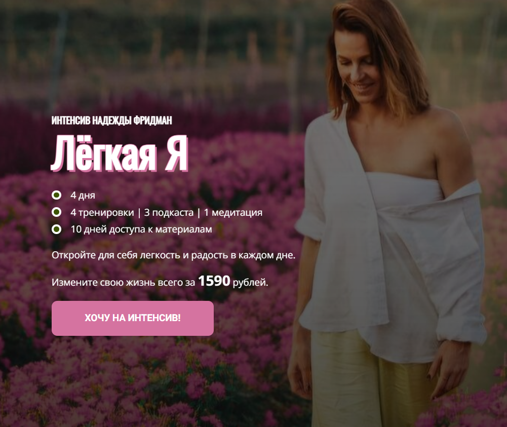 Программа интенсива «Лёгкая Я» поможет вернуть радость и легкость в вашу жизнь.