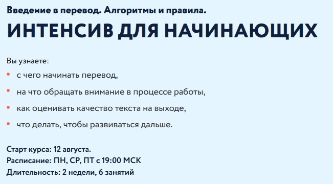 Курс закладывает основу для дальнейшего изучения отраслевого перевода — в маркетинге, технике, юриспруденции или медицине.