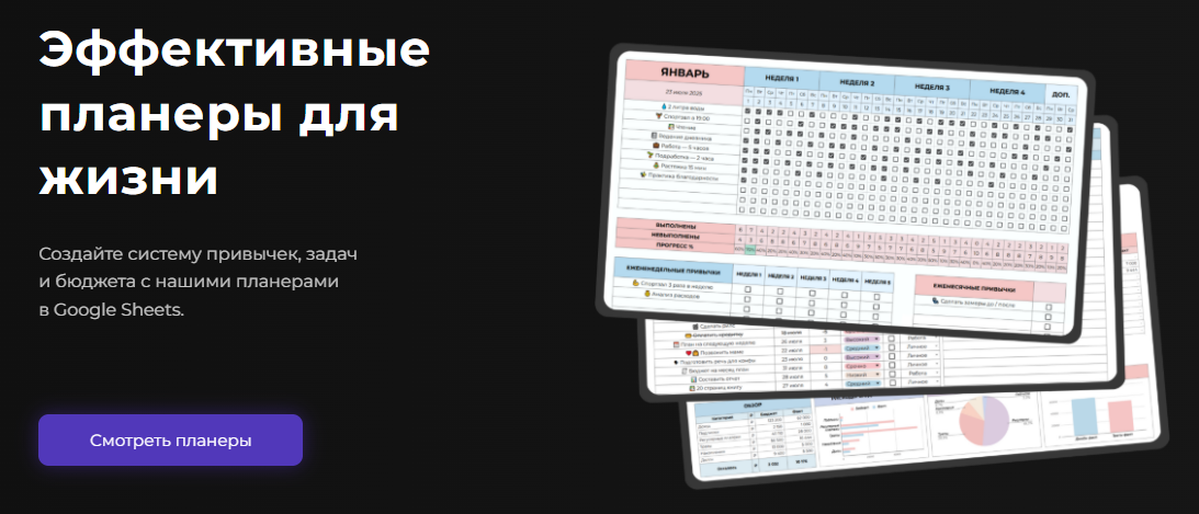 Создайте систему привычек, задач и бюджета с нашими планерами в Google Sheets.