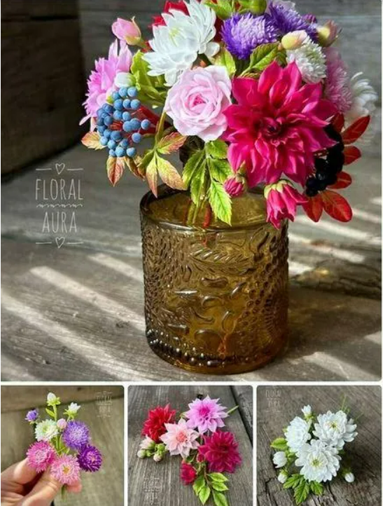 В рамках этого курса вы научитесь создавать миниатюрные цветы, с бутонами и листьями, такие как:
