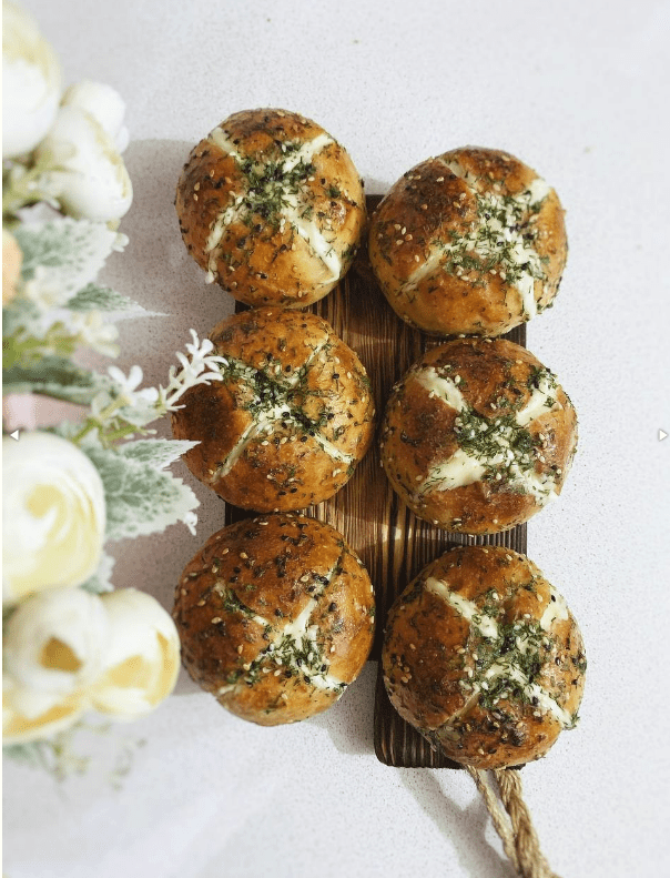 Это так по-азиатски: воздушность хлебного мякиша и начинка с некоторой сладостью, зелень, сыр, много чеснока и кунжут.