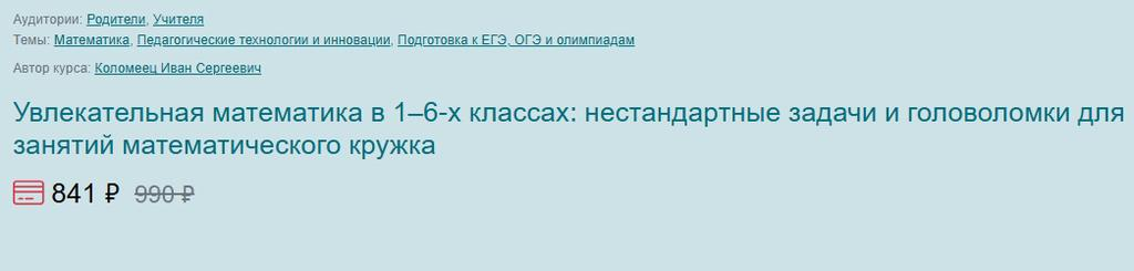 Математика – это просто и очень увлекательно! В рамках курса вы узнаете, как помочь ученикам 1–6-х классов развить математические способности, гибкость ума и получить опыт решения нестандартных задач. В качестве примеров будут использованы материалы реальных олимпиад и авторские задачи.