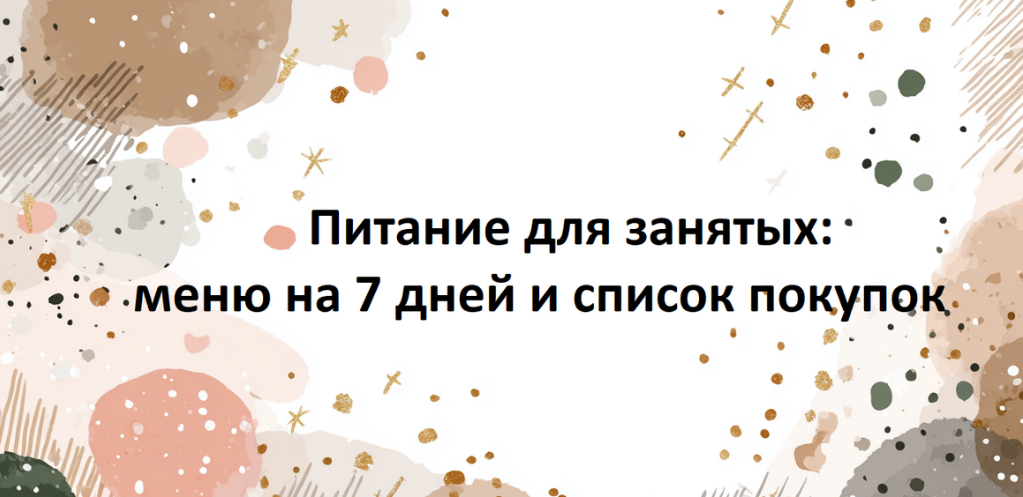 Название: Питание для занятых: меню на 7 дней и список покупок (2025)
