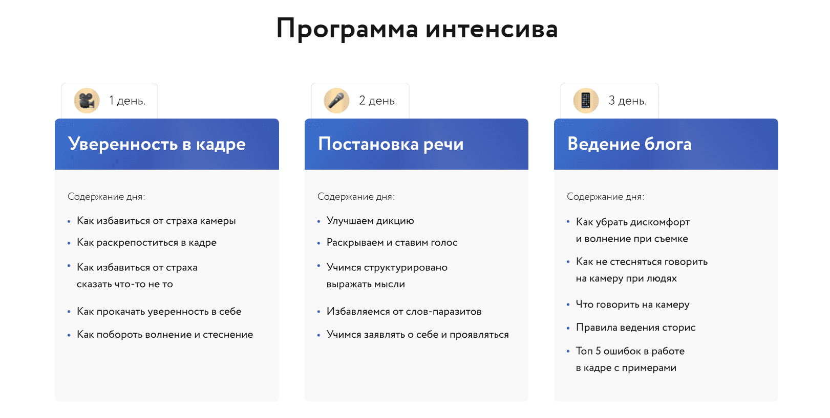 - Научитесь ярко заявлять о себе, уверенно общаться с людьми в жизни и на камеру