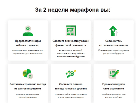 12 основных уроков в формате 15-30 минутных видеоПрограмма марафона:
