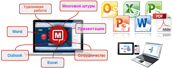 - Удаленная/совместная работа с картой в облачном сервисе Mindjet Connect.