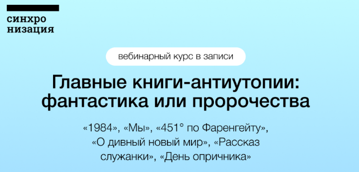 «1984», «Мы», «451° по Фаренгейту», «О дивный новый мир», «Рассказ служанки», «День опричника»online.synchronize.ru