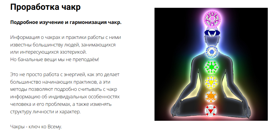 Это не просто работа с энергией, как это делает большинство начинающих практиков, а эти методы позволяют подробно считывать с чакр информацию об индивидуальных особенностях человека и его проблемах, а также изменять структуру личности и характер.