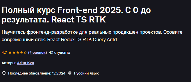 Название: Полный курс Front-end 2025. С 0 до результата. React TS RTK (2024)