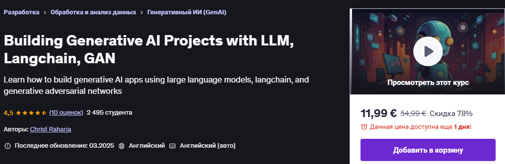 [Christ Raharja] [Udemy] Создание генеративных ИИ-проектов с помощью LLM, Langchain, GAN (2025)
