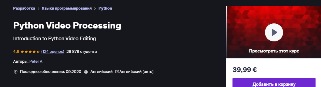 Если вы хотите написать код Python, который автоматически редактирует видео, запишитесь на этот курс по редактированию видео на Python.