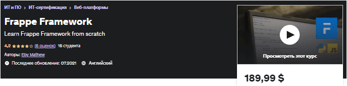 Этот курс предназначен для начинающих Frappe-разработчиков. Студенты могут научиться работать с frame Frappe с нуля. Frappe, произносится как fra-pay, full-stack веб-фреймворк, написанный на Python и JavaScript с MariaDB в качестве базы данных. Это фреймворк, на котором работает ERPNext. Он довольно общий и может использоваться для создания приложений, управляемых базой данных.