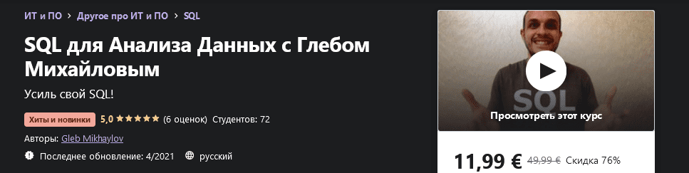 [Udemy] Gleb Mikhaylov - SQL для Анализа Данных с Глебом Михайловым (2021)