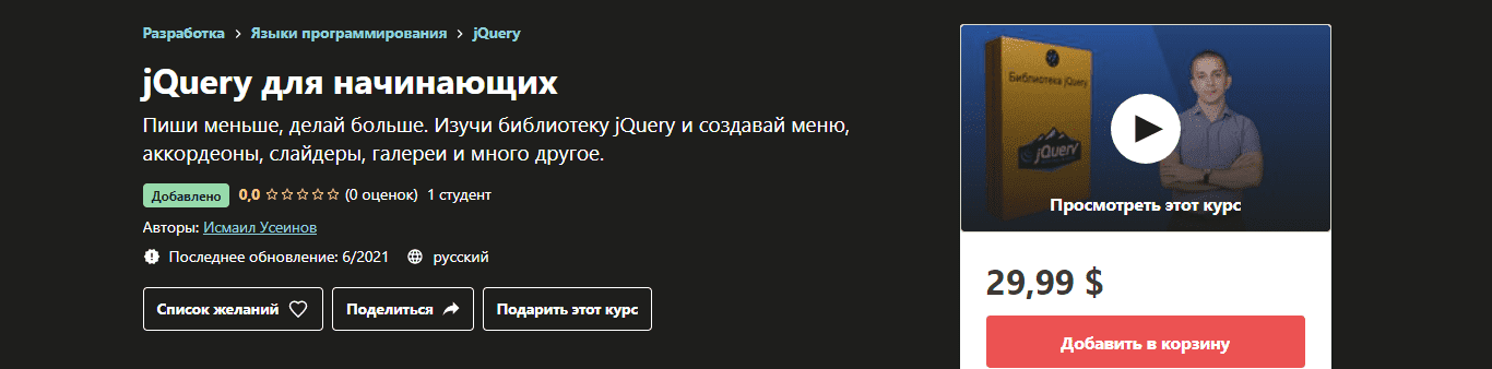 [Udemy] Исмаил Усеинов - jQuery для начинающих (2021)
