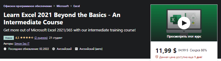 Этот курс Excel 2021 Intermediate предназначен для тех, кто знаком с Excel на начальном уровне и хочет воспользоваться преимуществами более продвинутых функций приложения. Он также подходит для людей, у которых есть навыки от начального до среднего, использующие более старую версию Excel.