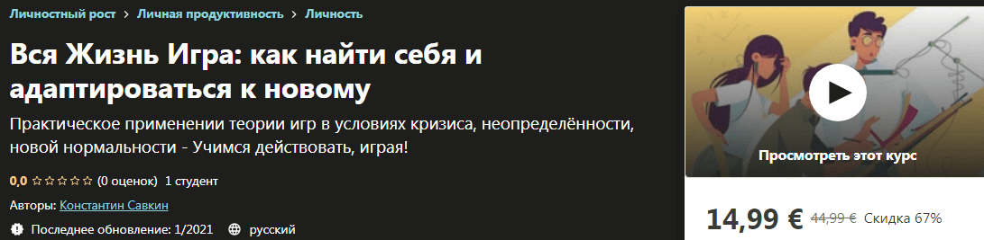 [Udemy] Константин Савкин - Вся жизнь игра: как найти себя и адаптироваться к новому (2021)