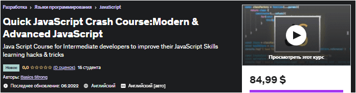 «Быстрый ускоренный курс JavaScript по современным и продвинутым приемам JavaScript»
