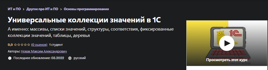 [Максим Новак] [Udemy] Универсальные коллекции значений в 1С (2022)