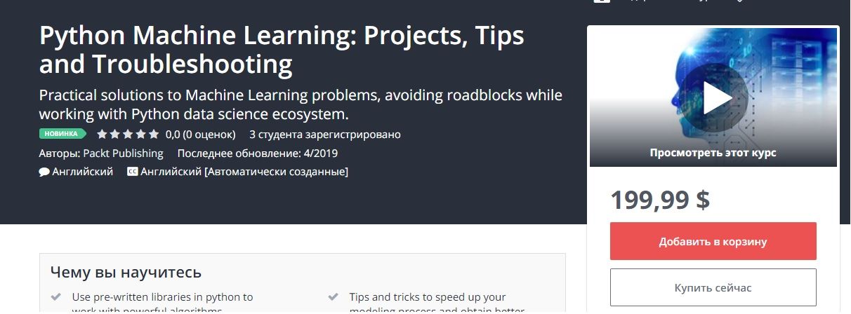 Название: Машинное обучение на Python: Проекты, Подсказки, Решения проблем (2019)