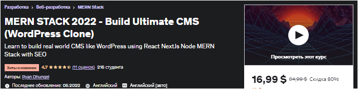 [Udemy] MERN STACK 2022 - Создайте CMS (клон WordPress) (2022)