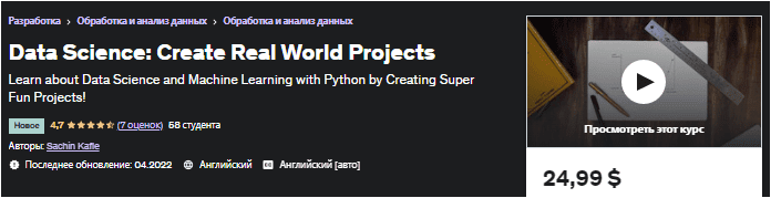 Udemy [Udemy] Наука о данных: создавайте проекты реального мира (2022)