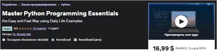 В связи с этим очень важно освоить этот популярнейший язык программирования. Обладая навыками Python, это поможет вам изменить свою карьеру с хорошей оплатой. В этом курсе используются примеры из повседневной жизни, которые помогут вам легко и быстро освоить основы программирования на Python. После этого курса вы будете владеть базовыми знаниями для дальнейшего изучения любых продвинутых тем Python, таких как веб-разработка, анализ данных, моделирование и машинное обучение, компьютерное зрение и так далее.