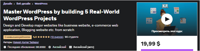 [Udemy] Освойте WordPress, создав 5 реальных проектов WordPress (2022)